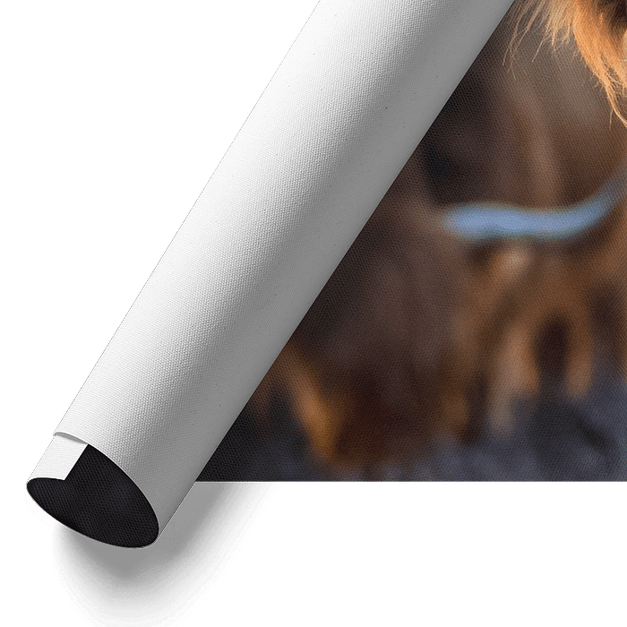 Buy this highland cow art Scottish Highlander in evening light. Golden hour. by Henk Van Nunen Fotografie on canvas, ArtFrame, poster and wallpaper, printed on demand in high quality.