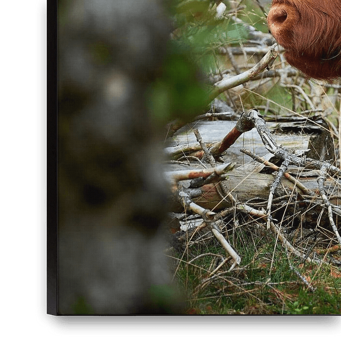 A Scottish Highlander lies resting among the trees in a nature reserve near Wezep on the Veluwe, in the Netherlands.