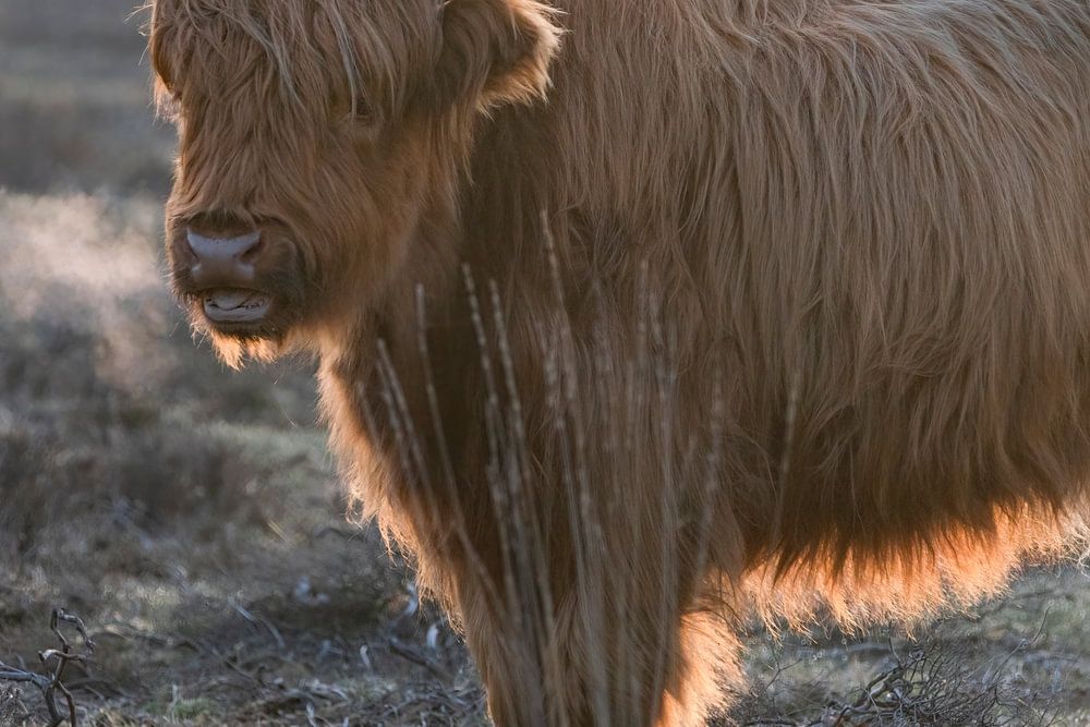 Nature reserve Veluwezoom on the Veluwe in the Netherlands. Tough and penetrating portrait of the robust Scottish Highlanders who graze the heathlands of the Veluwezoom.