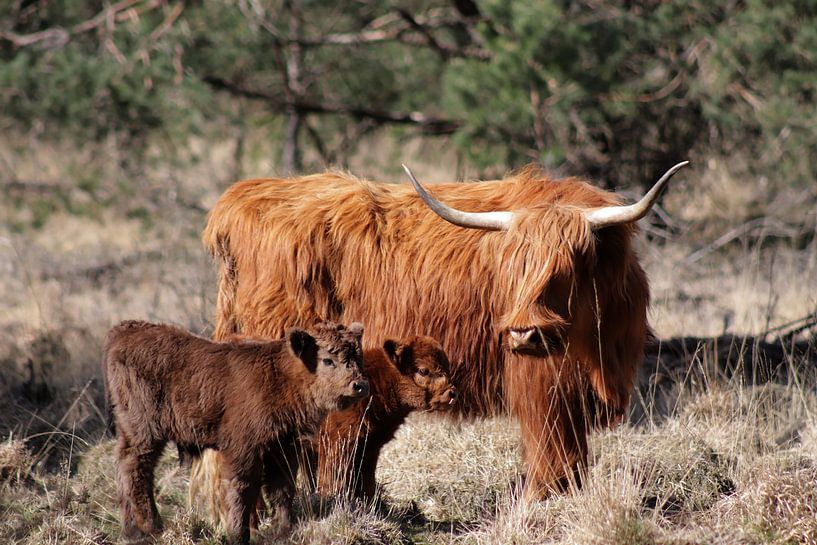 Buy this highland cow art Scottish Highlander with calf by Joke van Bemmel on canvas, ArtFrame, poster and wallpaper, printed on demand in high quality.
