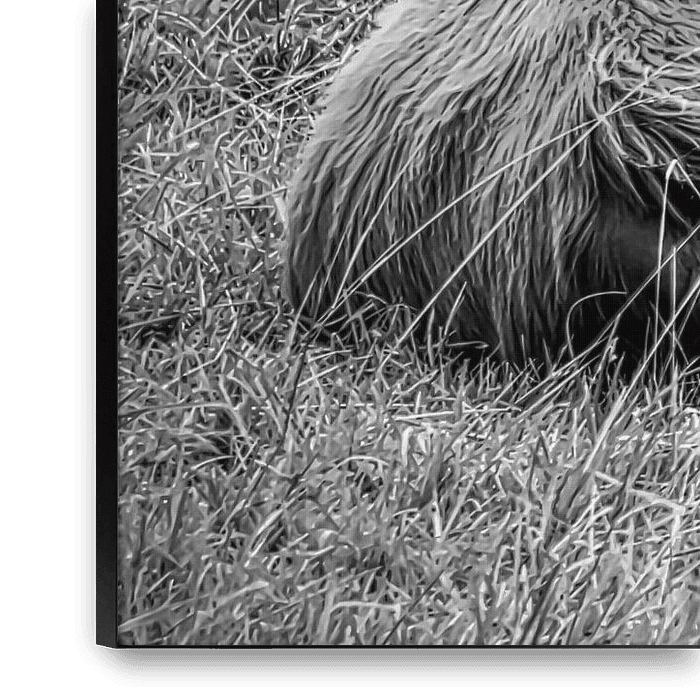 Buy this cow art Scottish highland cattle black and white by Dieter Walther on canvas, ArtFrame, poster and wallpaper, printed on demand in high quality.
