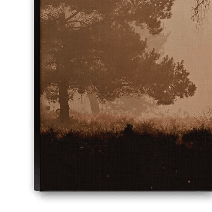 Buy this landscape artwork Scottish highlanders in a misty field by Jolanda Stam on canvas, ArtFrame, poster and wallpaper, printed on demand in high quality.