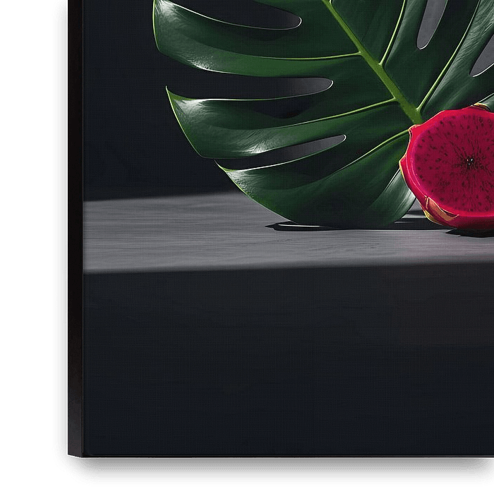 Buy this still life Sculptural Shadows Dragon Fruit and Monstera Leaf Stillness by maulana risyad on canvas, ArtFrame, poster and wallpaper, printed on demand in high quality