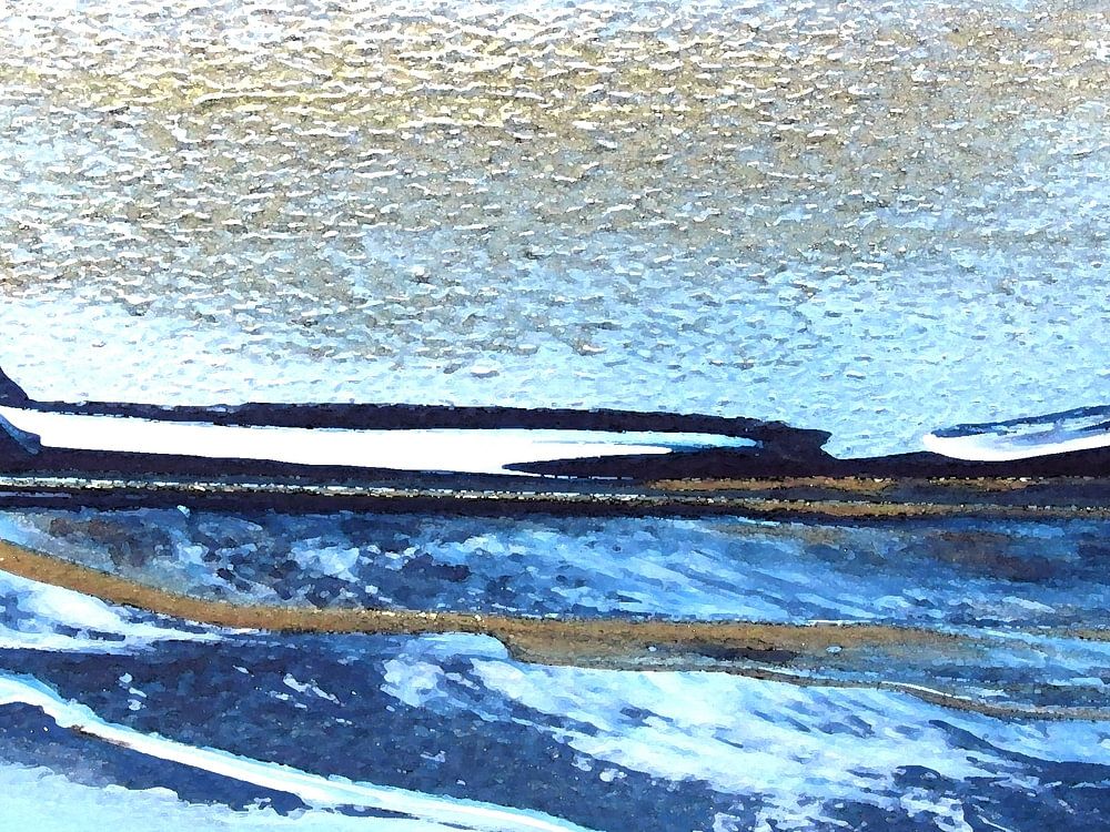 Representation of the energy of the sea. Digital image processing of painted seascapes, highly abstracted. Through various steps and modifications in Photoshop, my sea energy images emerge as digital art – with intentional sharp and blurred areas, many small details, etc. Please take a close look at the enlargements to see if they suit…