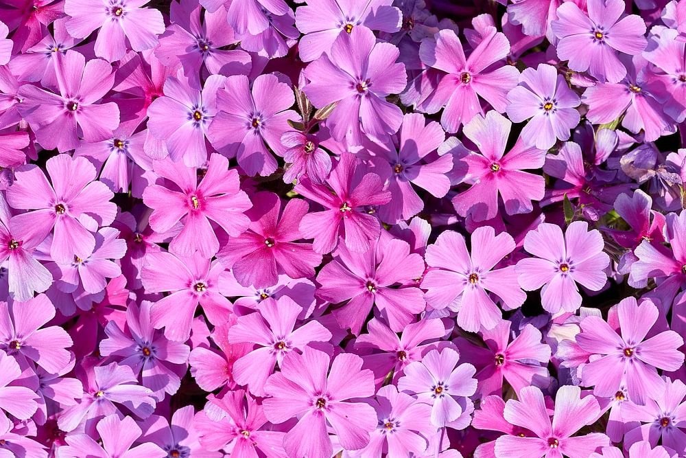 Flowering carpet of phlox, Phlox subulata. This quite abundant flowering decorative plant is increasingly popular in gardens and overgrows large areas.