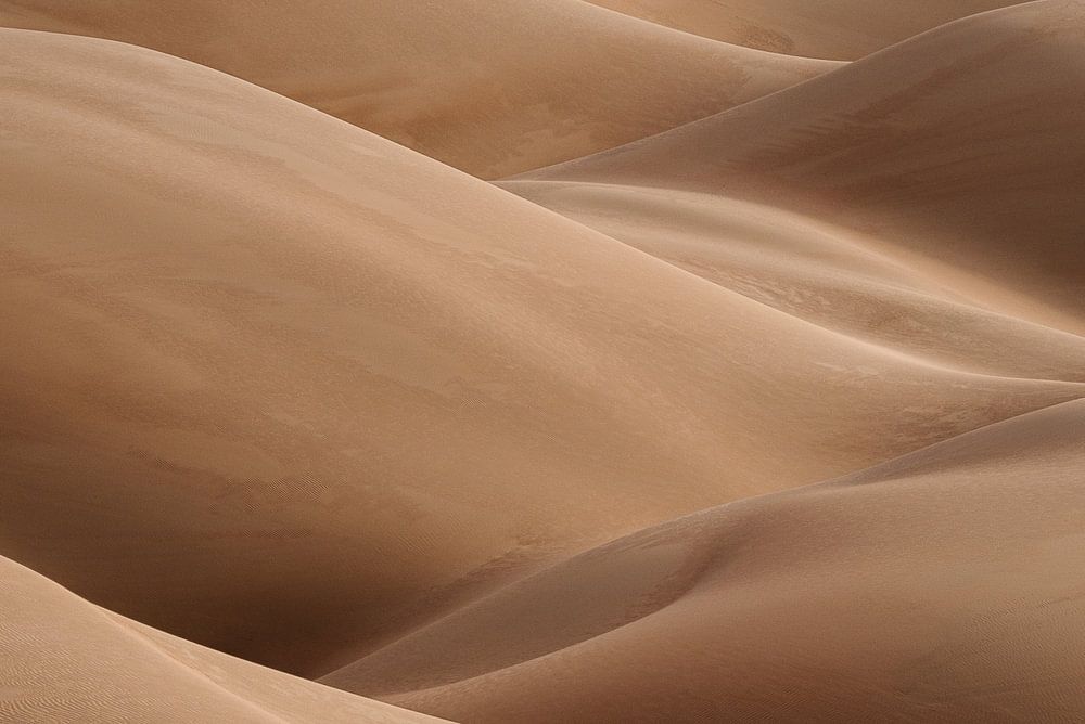 Sea of sand in the Sahara desert. The desert is my favourite place. The landscape is much more varied than you would expect. Nature is beautiful. My favourite desert is the Sahara. It is incredibly large, about the size of the United States. This photo was taken in Mauritania. A large country in the west of Africa, south of Morocco. There you have large areas where you can get delightfully lost through the sand dunes. Infinite batches of dunes formed by the wind. Lovely to walk through them. Barely any people around and enjoying the emptiness and silence. Alone with the desert. The sand dunes change colour throughout the day. The dunes walk through the desert. They move slowly.