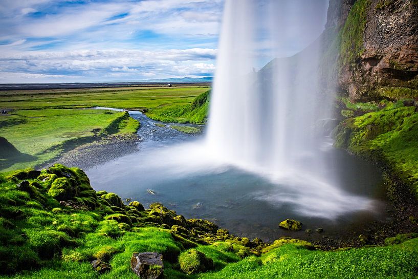 Buy the photo Seljalandsfoss Waterfall Iceland - A View into Iceland's Vastness by Patrick Kilb on canvas, ArtFrame, poster and wallpaper, printed on demand in high quality.