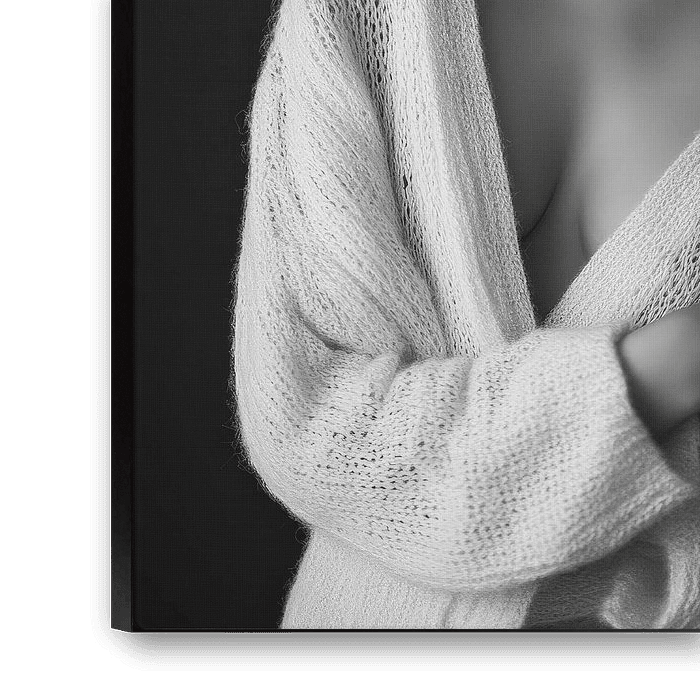 An interplay of light and shadow, captured in timeless elegance. The soft contours and expression of calm lend the room a special intimacy. This black and white composition is perfect for a bedroom or a stylish living room, where it invites you to dream and linger.