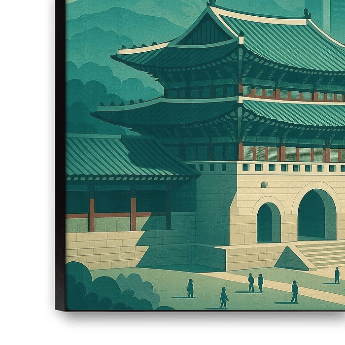 This striking Seoul Art Deco Poster captures the city’s dynamic balance between tradition and innovation. In the foreground, the graceful roofs of Gyeongbokgung Palace stand proudly against the modern skyline of N Seoul Tower and towering skyscrapers, with soft sunlight beaming through the morning haze. The elegant teal palette and retro composition pay homage to early 20th-century poster design while reflecting the spirit of modern Korea. Perfect for travel lovers, K-culture fans, and art collectors, this poster radiates sophistication and cultural pride. Hang it in your home or office to celebrate Seoul’s unique duality — a city where royal palaces and futuristic skylines coexist beautifully, offering endless inspiration for creativity and wanderlust.