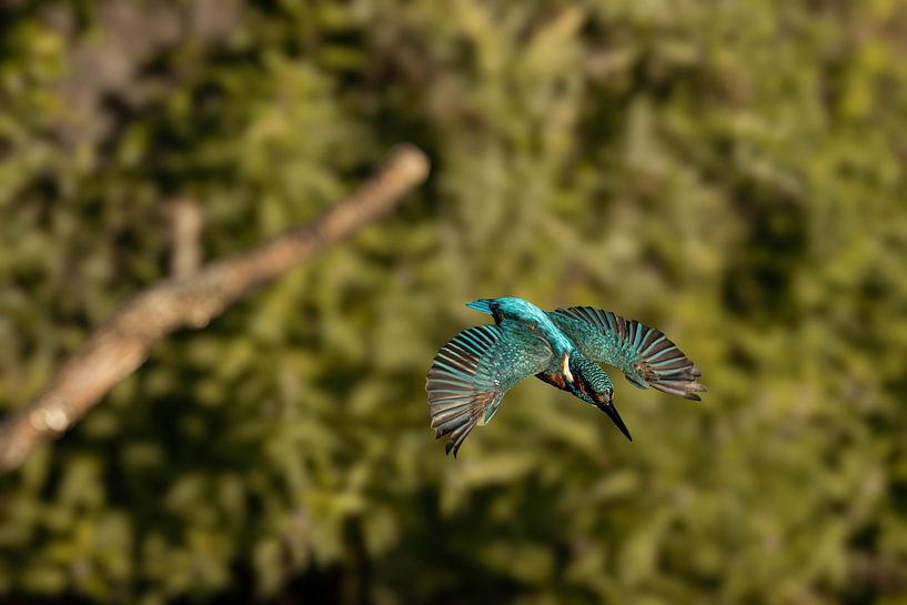 The beautiful blue feathers contrast with the warm autumn colours nature gives us. It is wonderful to see this bird flying around, after which it sits very quietly, almost like a statue, still on a branch.