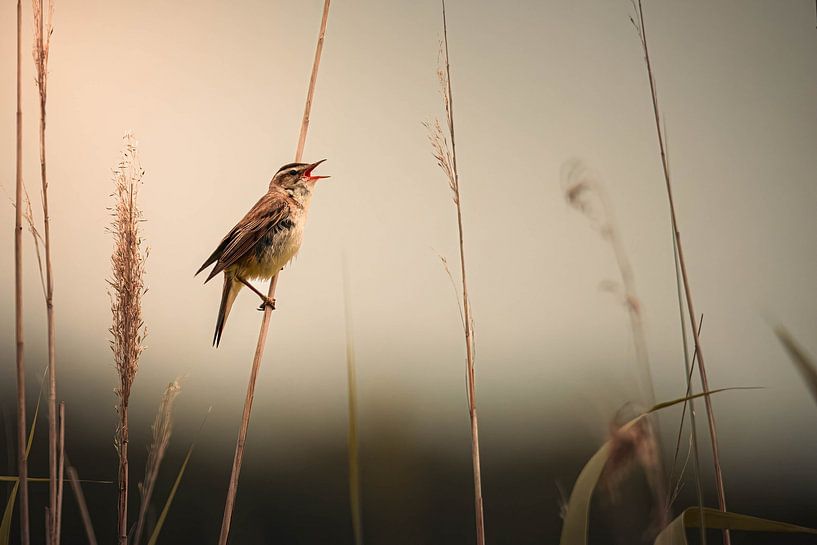 Buy this landscape artwork Series Reed Warbler by Lens_en_Dier on canvas, ArtFrame, poster and wallpaper, printed on demand in high quality.