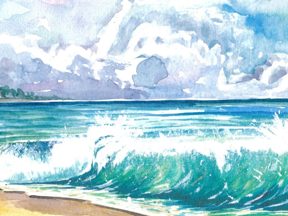 Buy this painting Seven Mile Beach Grand Cayman with turquoise waves by Markus Bleichner as a reproduction on canvas, ArtFrame, poster and wallpaper, printed on demand in high quality.