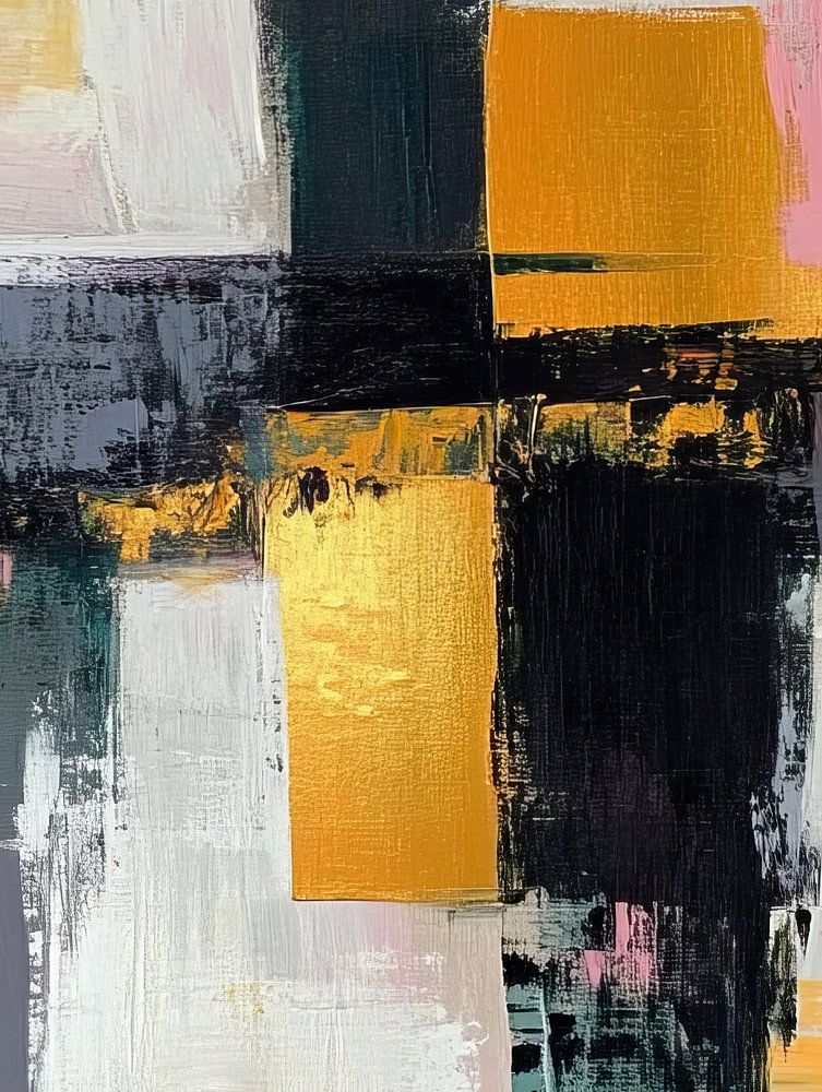 Details: abstract, modern, art, pastel, gold, black, white, pink, green, yellow