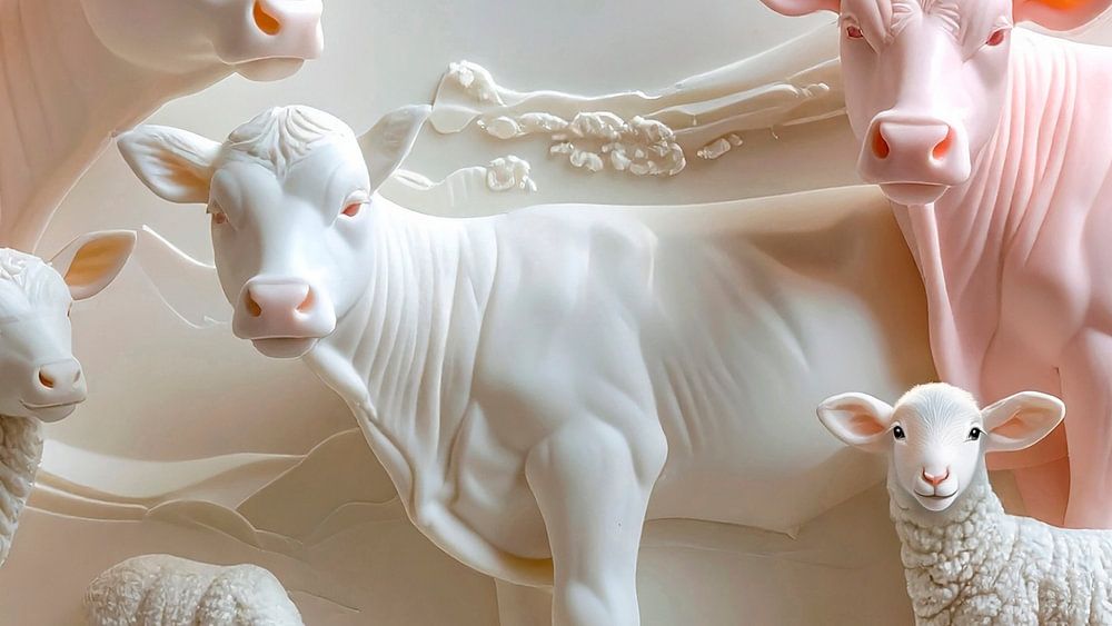 Soft image of cows and sheep. The whole is made of soap in a soft pastel colour. The image was generated using ai.