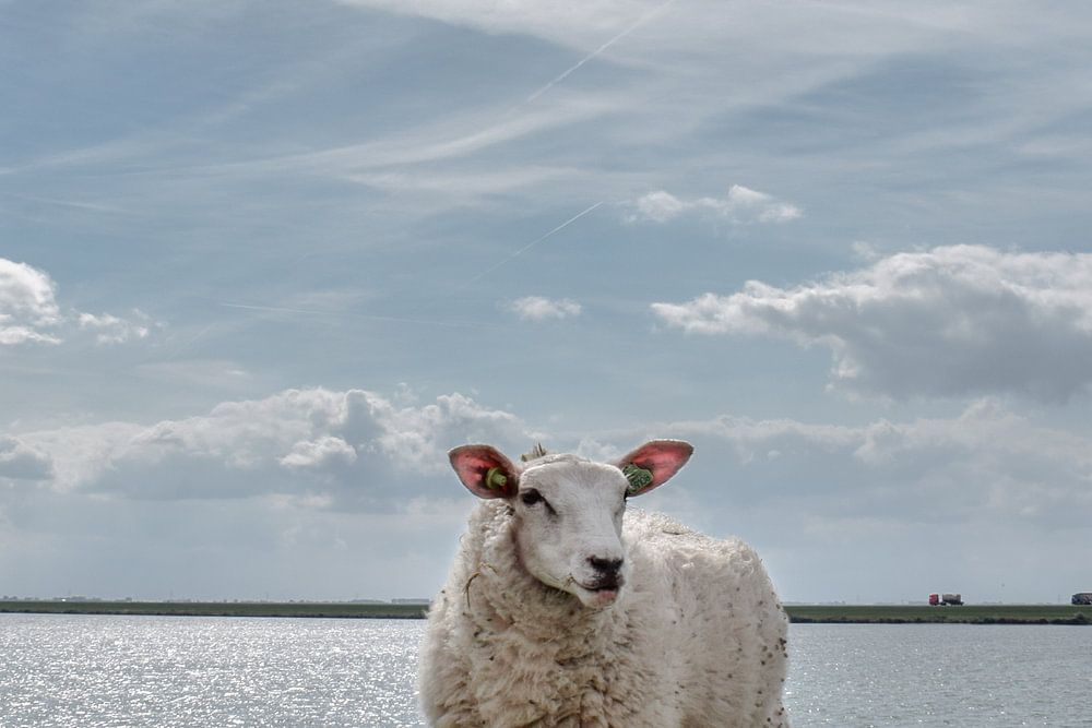 Sheep at the shore by Kim de Been