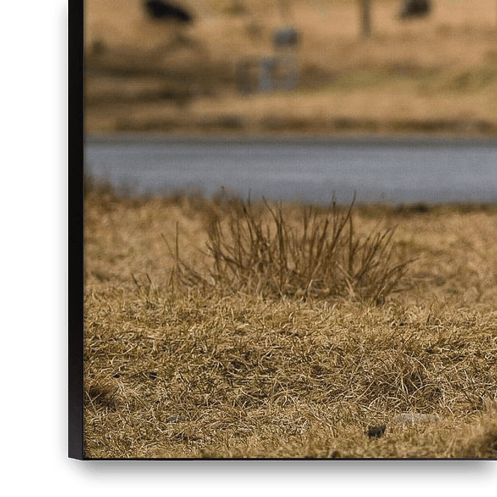 Buy this landscape artwork Sheep in front of a small settlement by Denis Feiner on canvas, ArtFrame, poster and wallpaper, printed on demand in high quality.