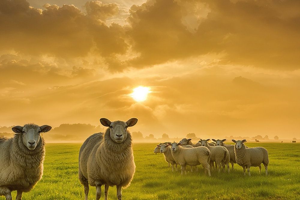 Sheep with sunrise by Bertrik Hakvoort