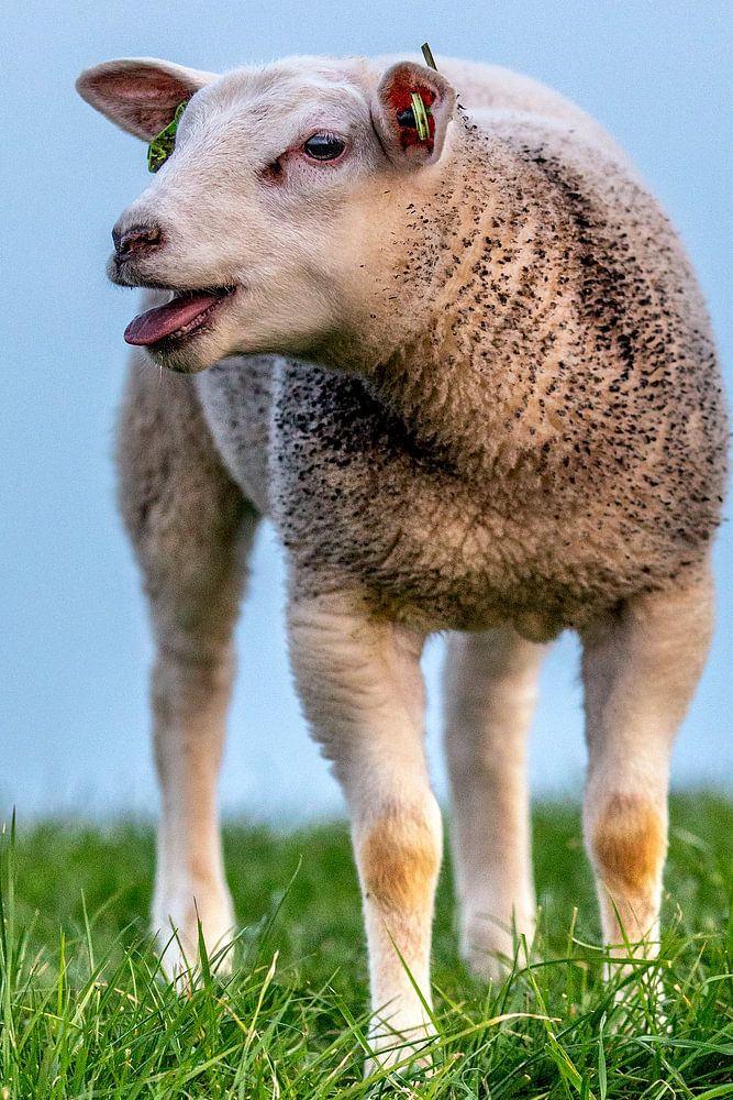 Sheep on a dike in Zeeland. The sheep is a typical farm animal that you see everywhere in Zeeland. Grazing sheep on dikes has an important function: the sheep kick up the soil and prevent bushes and trees from growing on the dike and damaging it with their roots. This is where the expression "four golden legs and a golden mouth" comes from.