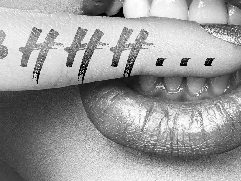 About "Shhh... Tattooted Woman Biting On Her Finger Black And White Photography Photograph Photographs Art Print"