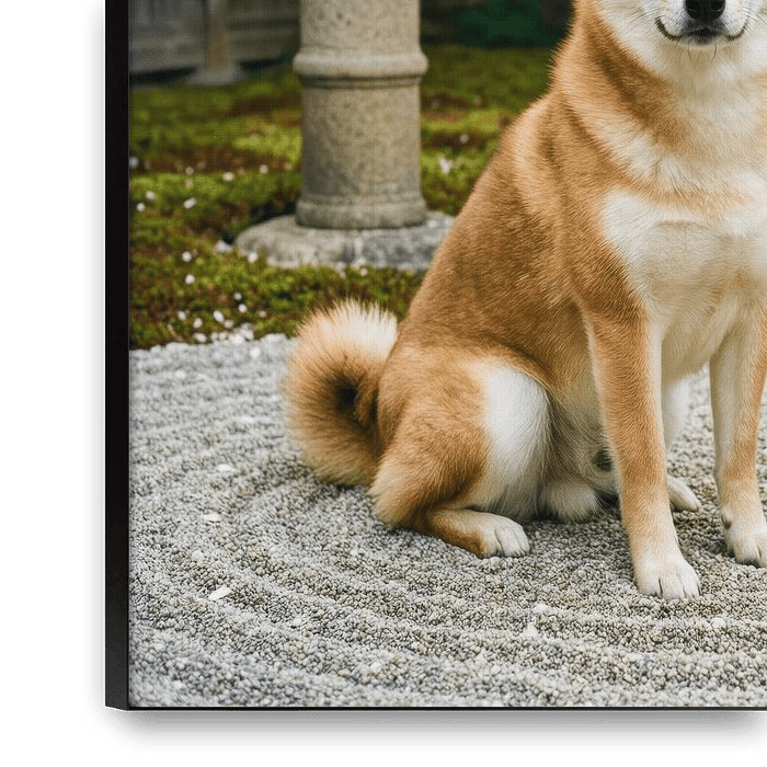 Buy the photo Shiba Inu In Japanese Garden With Cherry Blossoms by Matthias Hauser on canvas, ArtFrame, poster and wallpaper, printed on demand in high quality.
