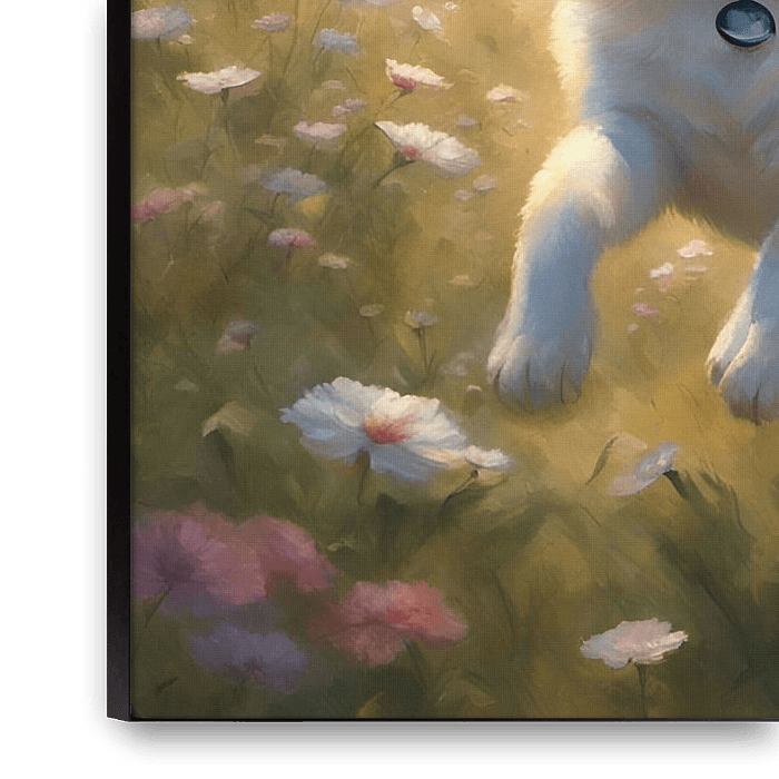 Buy this digital art artwork Shiba Inu playing in a Flowerfield by Johannas Art Creations as a reproduction on canvas, ArtFrame, poster and wallpaper, printed on demand in high quality.