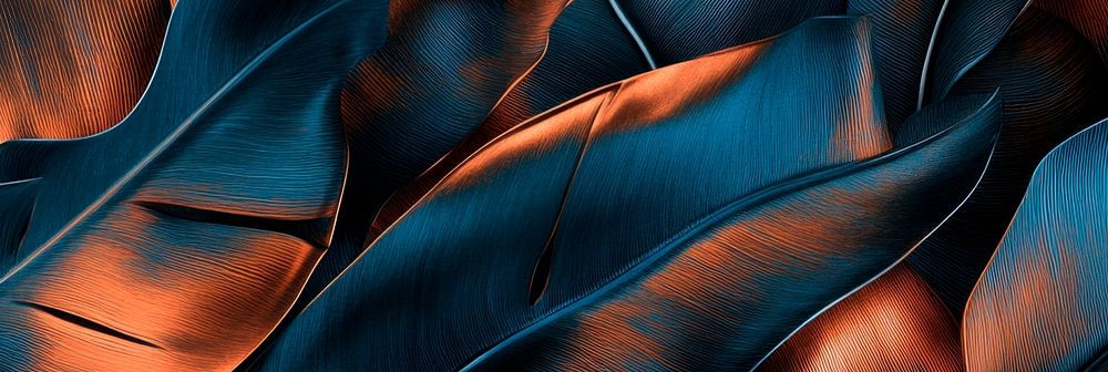 In a fascinating interplay of deep blue and warm copper tones, a harmonious composition unfolds that is reminiscent of the elegance of supple leaves. The shimmering surfaces reflect light and create a lively texture, while the curved shapes radiate a calming yet dynamic aesthetic. A real feast for the eyes!