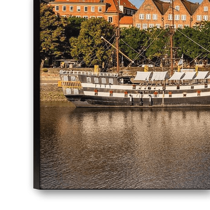 Buy this landscape artwork Ships on the Weser promenade in Bremen by Werner Dieterich on canvas, ArtFrame, poster and wallpaper, printed on demand in high quality.