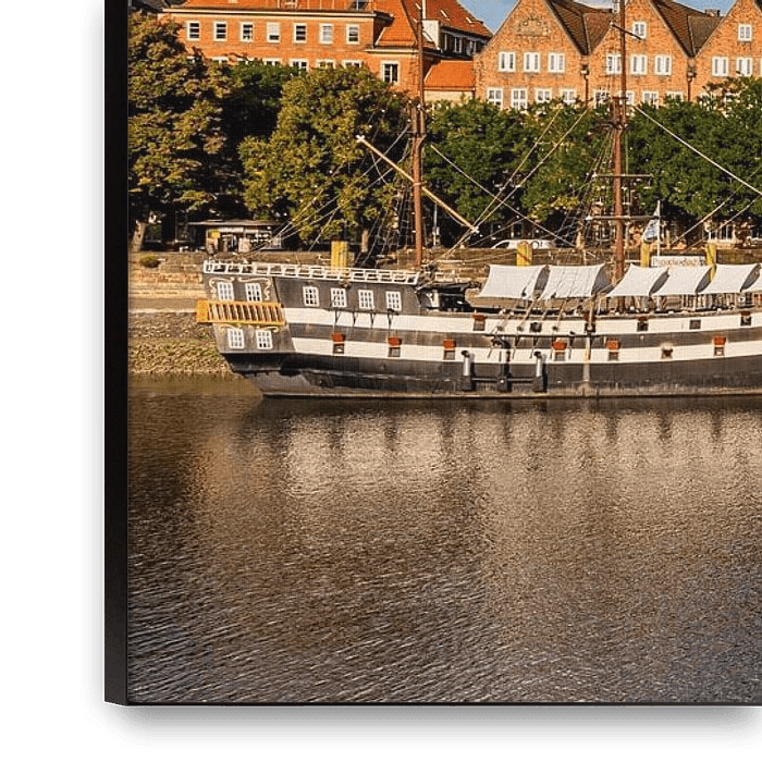 Sailing ship Alexander von Humboldt at the Martinian jetty on the Weser promenade in the Hanseatic city of Bremen, Germany