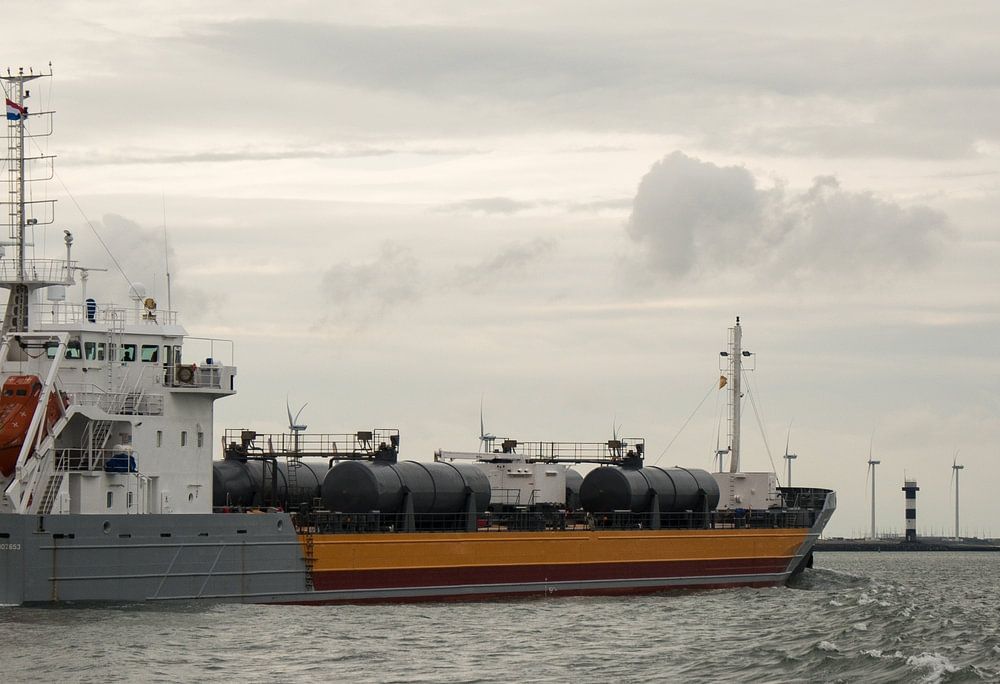 Ships sailing on the Nieuwewaterweg on their way to the North Sea.