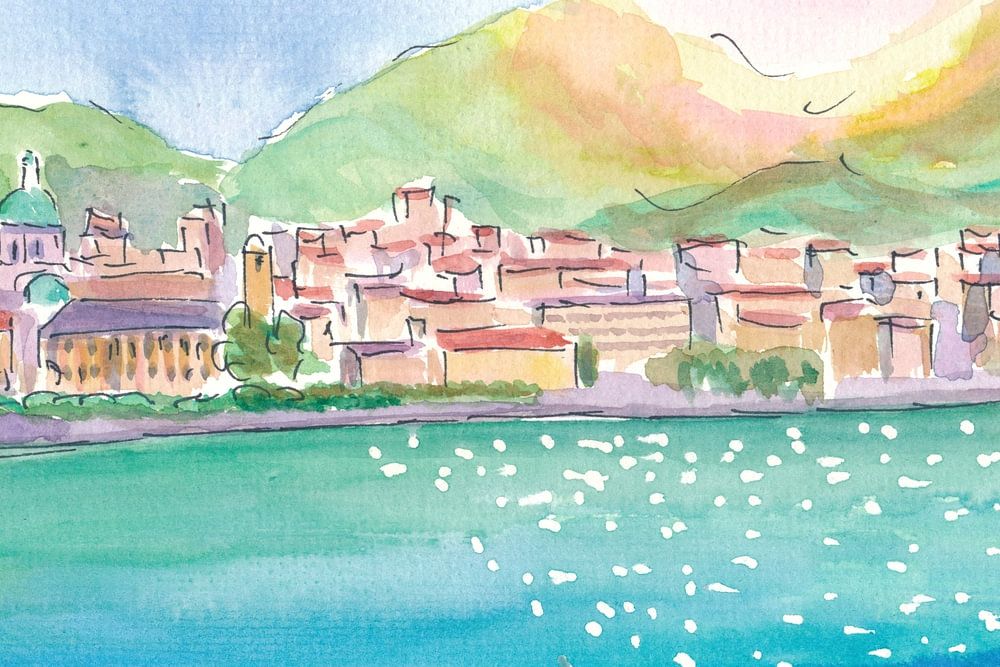 Buy this illustration Shore whispers The heart of Como by Markus Bleichner on canvas, ArtFrame, poster and wallpaper, printed on demand in high quality.