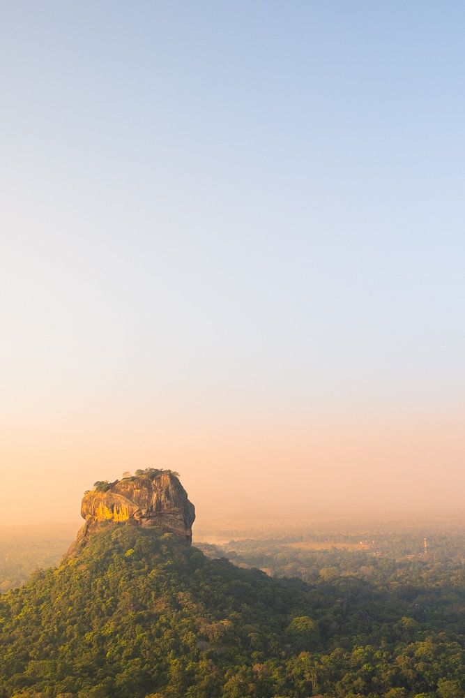 Sigiriya Rock, Sri Lanka seen from Pidurangala Rock at sunrise