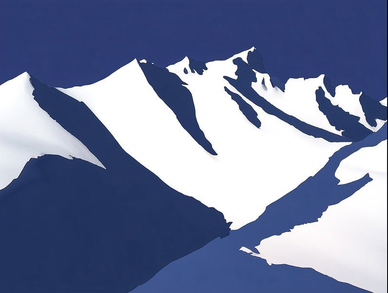 This artwork depicts a mountain composed of delicate dots and subtle textures. The illustrative style gives the image a handmade look, while the sharp shape creates a powerful silhouette. The contrast between light and dark brings depth and character.