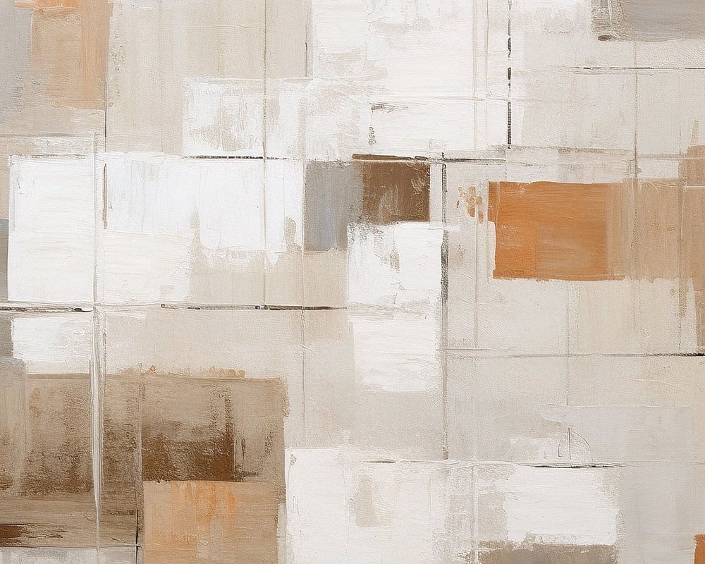 Silent Chaos | Abstract Geometric - This abstract painting plays with geometric blocks in a soft, earthy colour palette, from beige to brown tones with subtle orange accents. A play of light and shadow prevails, creating a calm yet captivating composition, ideal for a contemporary minimalist interior.