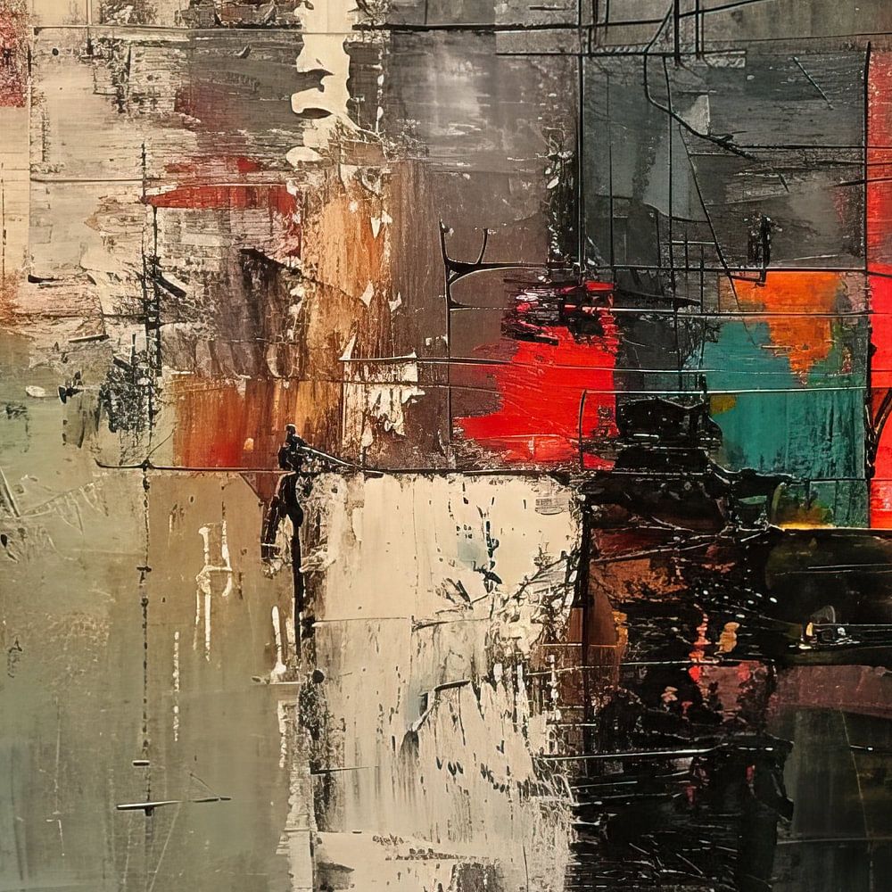 Details: abstract, painting, modern art, urban, texture, layers, contrast, dynamic, graphic, orange