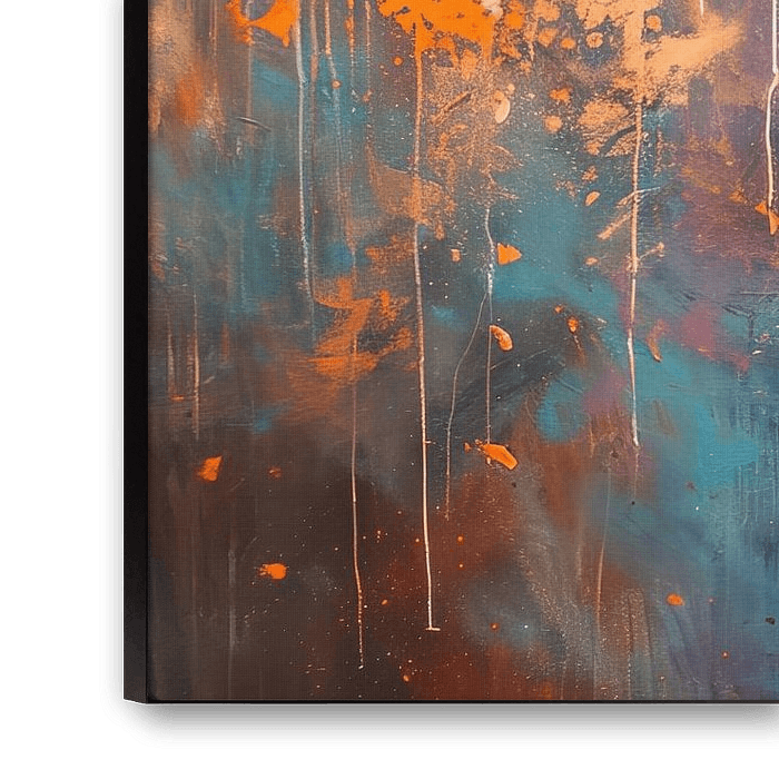 Silent Power - Here you see the subtle fusion of powerful, expressive brushstrokes with a warm glow contrasting with cooler blues and purples. The silhouette of a figure immerses itself in an atmosphere that feels both vibrant and mysterious, and is enhanced by unexpected splashes of orange and white that liven up the composition.