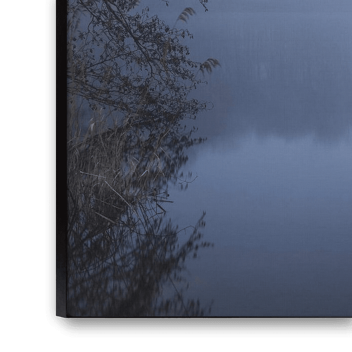 The world seems to stand still on this cold, misty morning at the rowing pond in Drunen. The trees along the water's edge rise out of the mist like phantoms, gently mirroring themselves in the rippling water. The sky is dully grey, the atmosphere almost palpably calm - a moment of pure tranquillity in which every sound seems to fall silent. This image captures the hushed beauty of a winter morning, where water and sky merge.