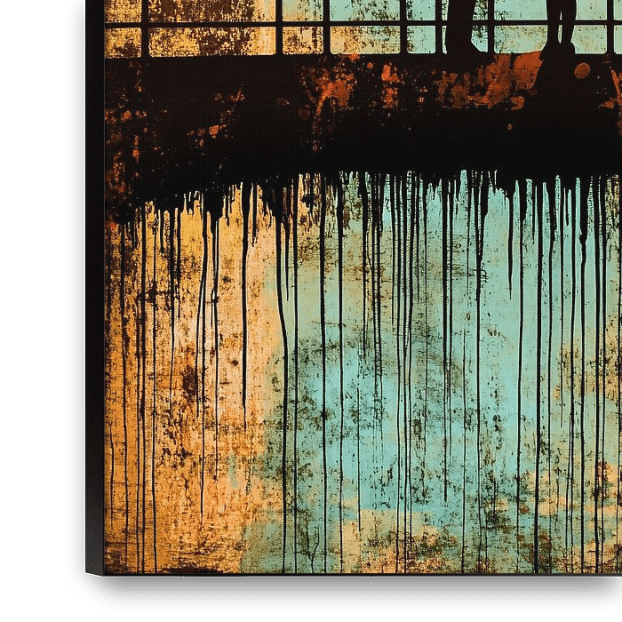 This artistic design shows a silhouette of a romantic couple on a bridge, framed by warm, atmospheric colours and abstract textures. Perfect for those who love modern art and meaningful, atmospheric decoration. Combining intimacy and style, the design brings a touch of romance to any room. Ideal for bedrooms or dining rooms, this piece…