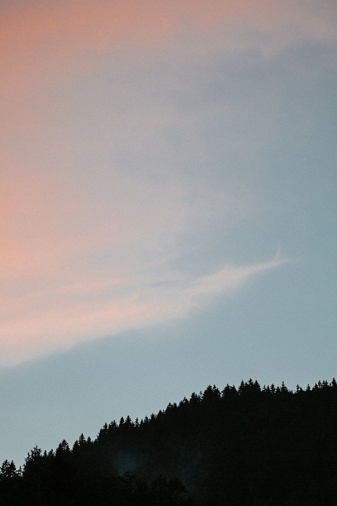 Tree top silhouette on the mountain in Spielberg, Austria during blue hour