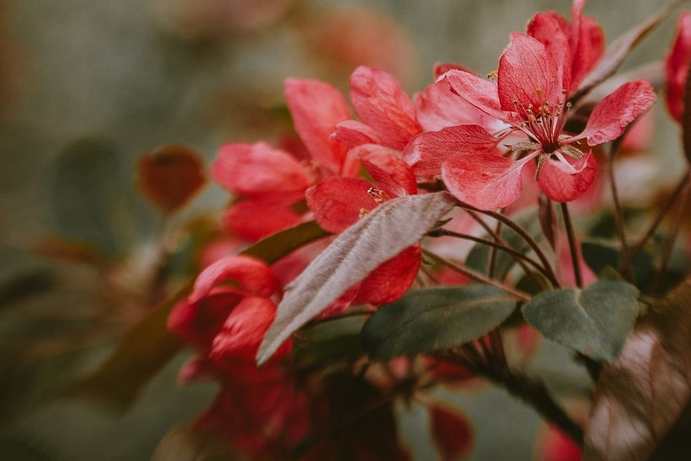 Red blossom of the crab apple (Malus Royal Beauty) A loving photo with lots of softness.