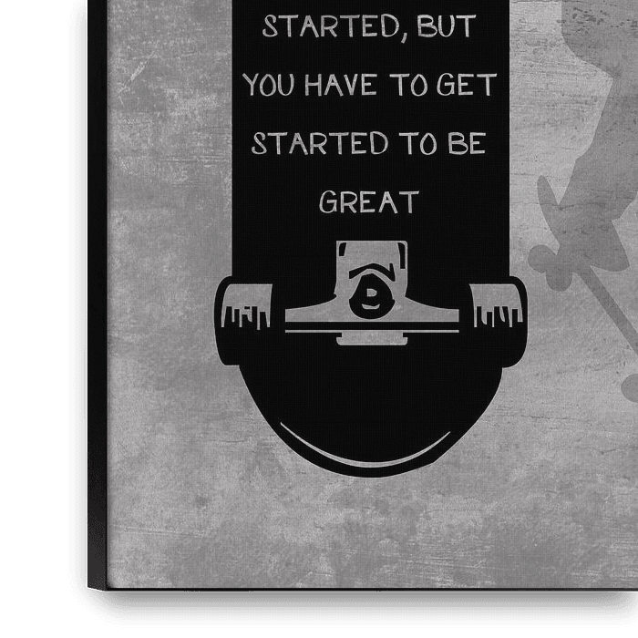 Buy this digital art artwork Skateboard Wallart "Get started to be great" Gift Idea by Millennial Prints as a reproduction on canvas, ArtFrame, poster and wallpaper, printed on demand in high quality.