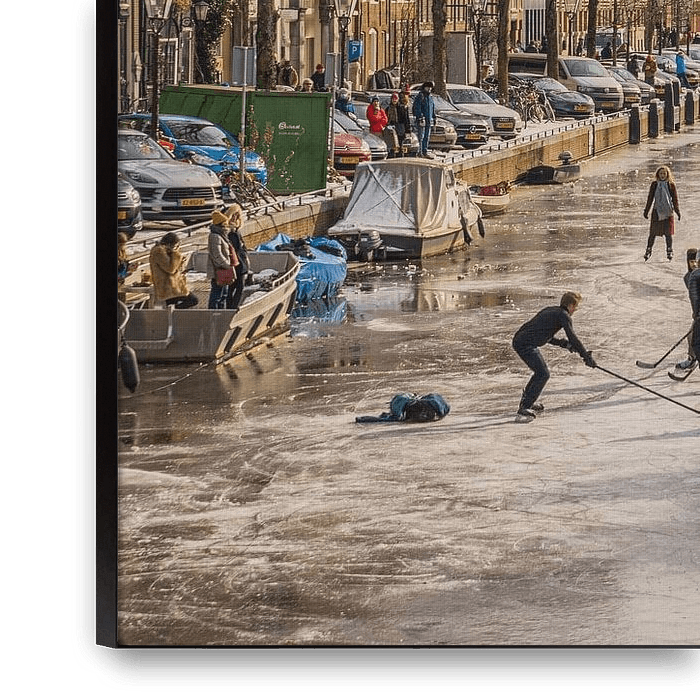 Old Dutch scenes during the early winter of 2021 on the Prinsengracht in Amsterdam. For a long time now, this canal has been frozen over and families and young people alike have been skating to their heart's content. An Anton Pieck-like scene