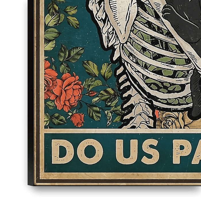 Buy this digital art artwork Skeleton Hugging Cat Till Death Do Us Part Poster by Steven Kingsbury as a reproduction on canvas, ArtFrame, poster and wallpaper, printed on demand in high quality.