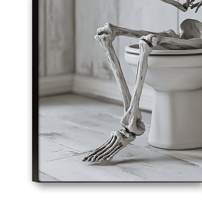 Skeleton in Bathroom , Halloween Wall Art , Vintage Poster ,Halloween Painting, Funny Toilet Print