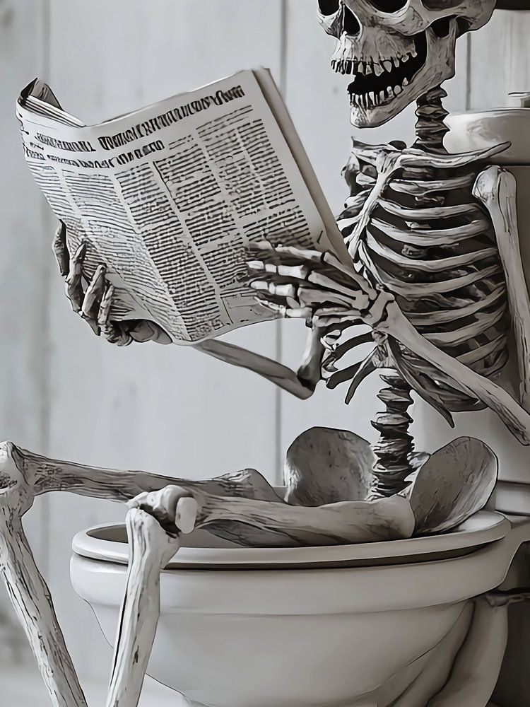 Skeleton on Toilet Reading a Newspaper by haroulita