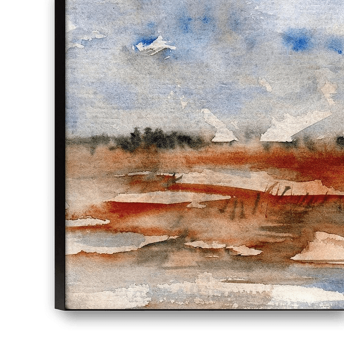 Buy this landscape artwork Sky and brown land by Claudia Gründler on canvas, ArtFrame, poster and wallpaper, printed on demand in high quality.