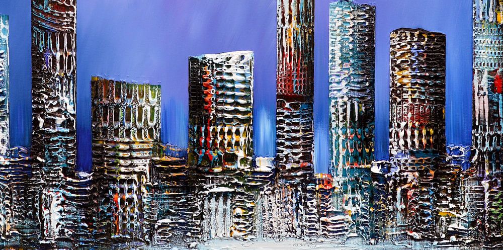 Buy this painting Skyline City by Gena Theheartofart as a reproduction on canvas, ArtFrame, poster and wallpaper, printed on demand in high quality.