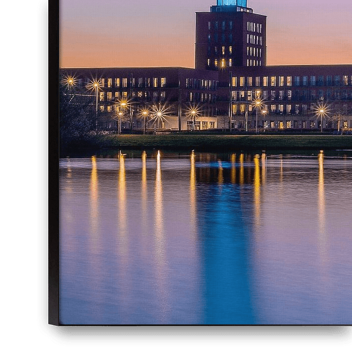 This beautiful skyline of Ypenburg in The Hague was photographed just before sunset. That's the time when the blue towers and street lights are at their best.