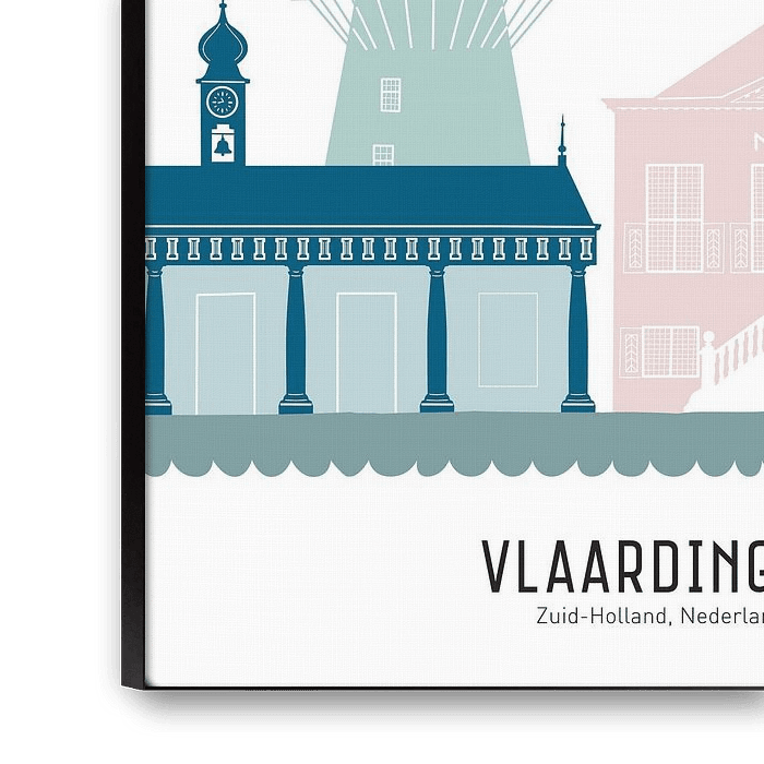 Buy this illustration Skyline illustration city of Vlaardingen in colour by Mevrouw Emmer on canvas, ArtFrame, poster and wallpaper, printed on demand in high quality.