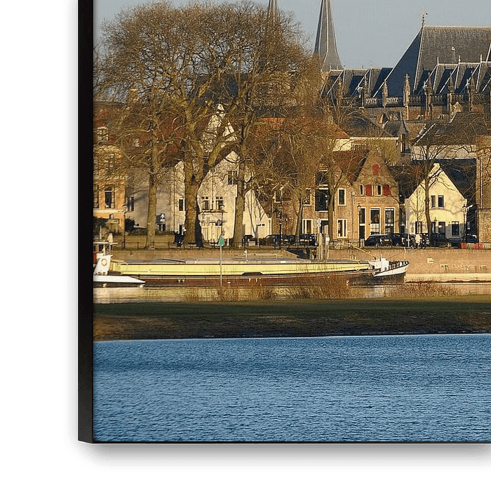 Skyline of Deventer on the river IJssel. With old houses on the Welle. In the background the characteristic Grote or Lebuïnuskerk, a Gothic hall church. In the Middle Ages, it was the city's main church and one of the main churches within the diocese of Utrecht.