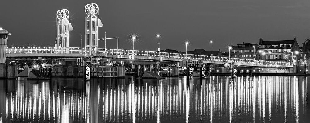 A black and white panorama of Kampen, a city and municipality in the province of Overijssel, Netherlands. It is a member of the former Hanseatic League and lies on the lower reaches of the IJssel River.
